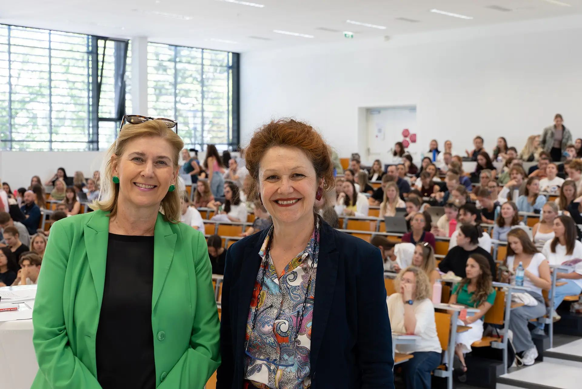 Auch die Leitung der Hochschule begleitete den Auftakt ins Berufsleben. Rektorin Barbara Herzog-Punzenberger betonte in ihrer Begrüßung die zentrale gesellschaftliche Bedeutung des Lehrer:innenberufs – gerade unter zunehmend herausfordernden Rahmenbedingungen. Den reflektierten Umgang mit Diversität, sowohl im Schulalltag als auch am UDE-Campus der PH Wien, hob sie als besonders wichtigen Kompetenzbereich hervor. Bildungsdirektorin Elisabeth Fuchs hieß die neuen Lehrkräfte persönlich willkommen und betonte die Bedeutung einer guten Begleitung in der Anfangsphase des Berufs.