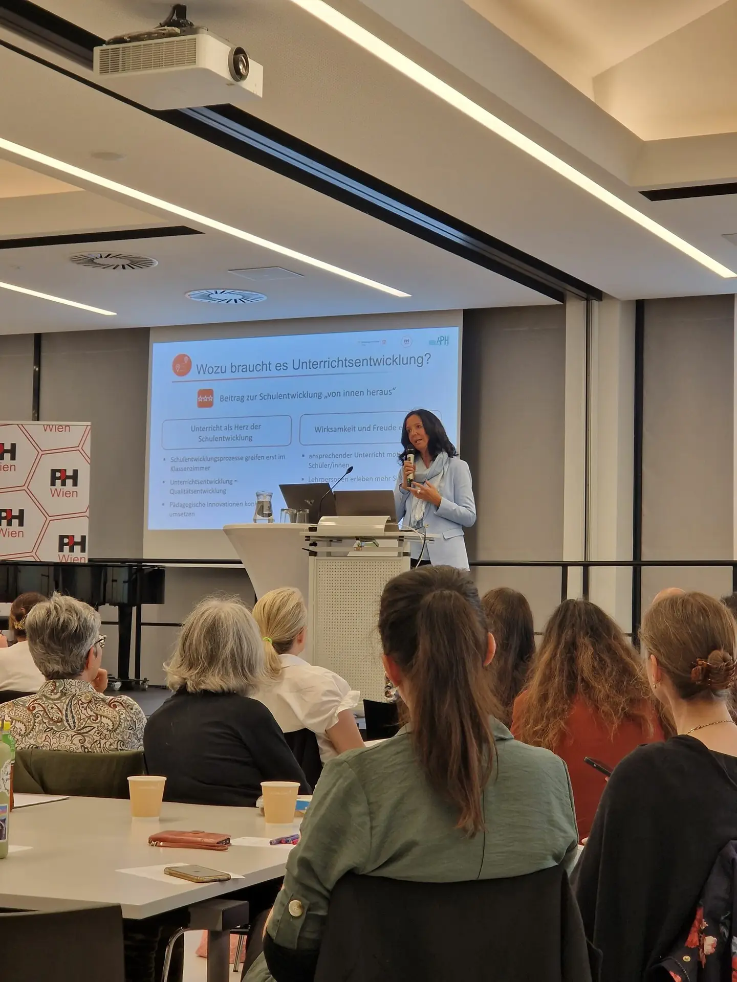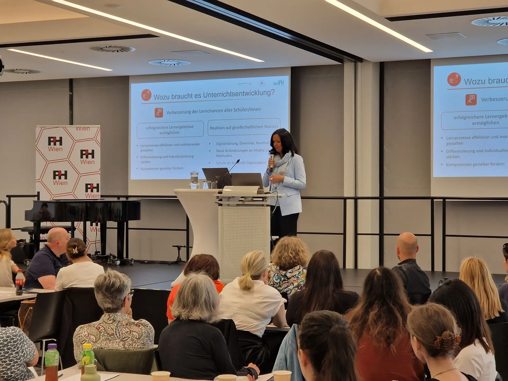 Im Zentrum stand die Vorstellung der „Initiative Unterrichtsentwicklung“ durch HRin Dr.in Alexandra Metz-Valny. Diese Initiative richtet sich an Mittelschulen in Wien und unterstützt gezielt die Weiterentwicklung von Unterricht – durch spezifische Fortbildungsangebote, Coaching, Netzwerke und Schulentwicklungsberatung über drei Jahre hinweg.