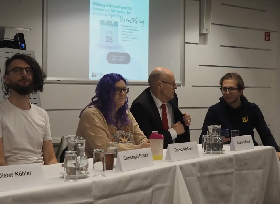 Sechs Expert:innen – Dieter Köhler, Kiril Iliev, Miriam Kos, Ronja Rößner, Andreas Steidl und Christoph Rosse – berichteten über ihre Erfahrungen im Bildungssystem. Dabei wurde deutlich, wie belastend soziale Anforderungen wie Händeschütteln oder Blickkontakt sein können. Neben guten Erfahrungen in der Volksschule kamen auch Ausgrenzungen, Schulabsenzen, Überforderung und späte Diagnosen zur Sprache. Viele fanden in Büchern oder digitalen Welten wichtige Rückzugsräume; Geschwister und besondere Interessen boten zusätzliche Stabilität.