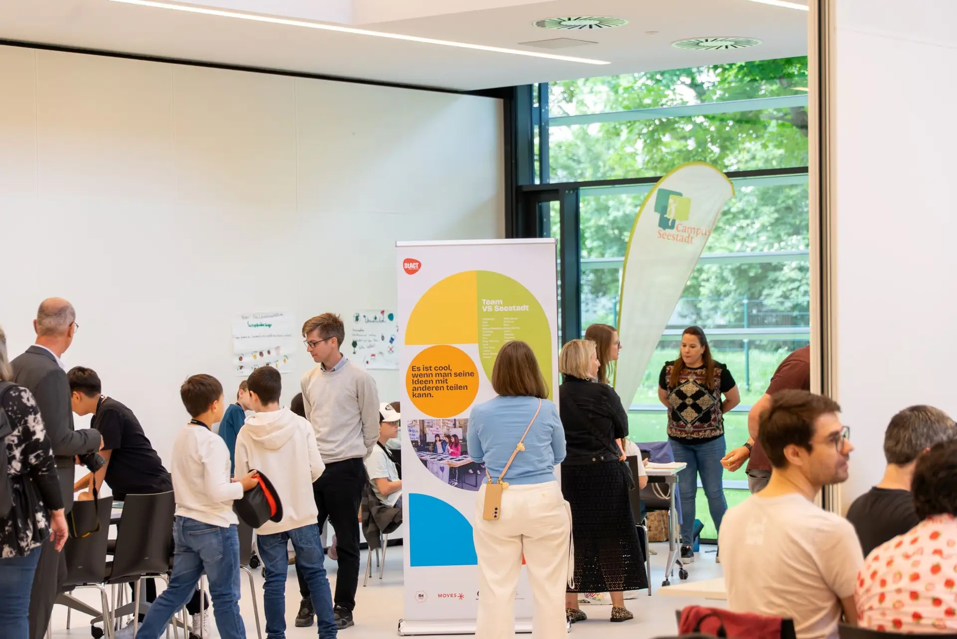 Unter dem Motto “Große Neugier ist der beste Start” präsentierten Schüler*innen aus Volksschulen, Mittelschulen und einer HTL ihre Projekte in einer Living Library, einem interaktiven Format, in dem die Kinder und Jugendlichen selbst zu “lebenden Büchern” wurden und ihre Forschungsergebnisse in persönlichen Gesprächen teilten.