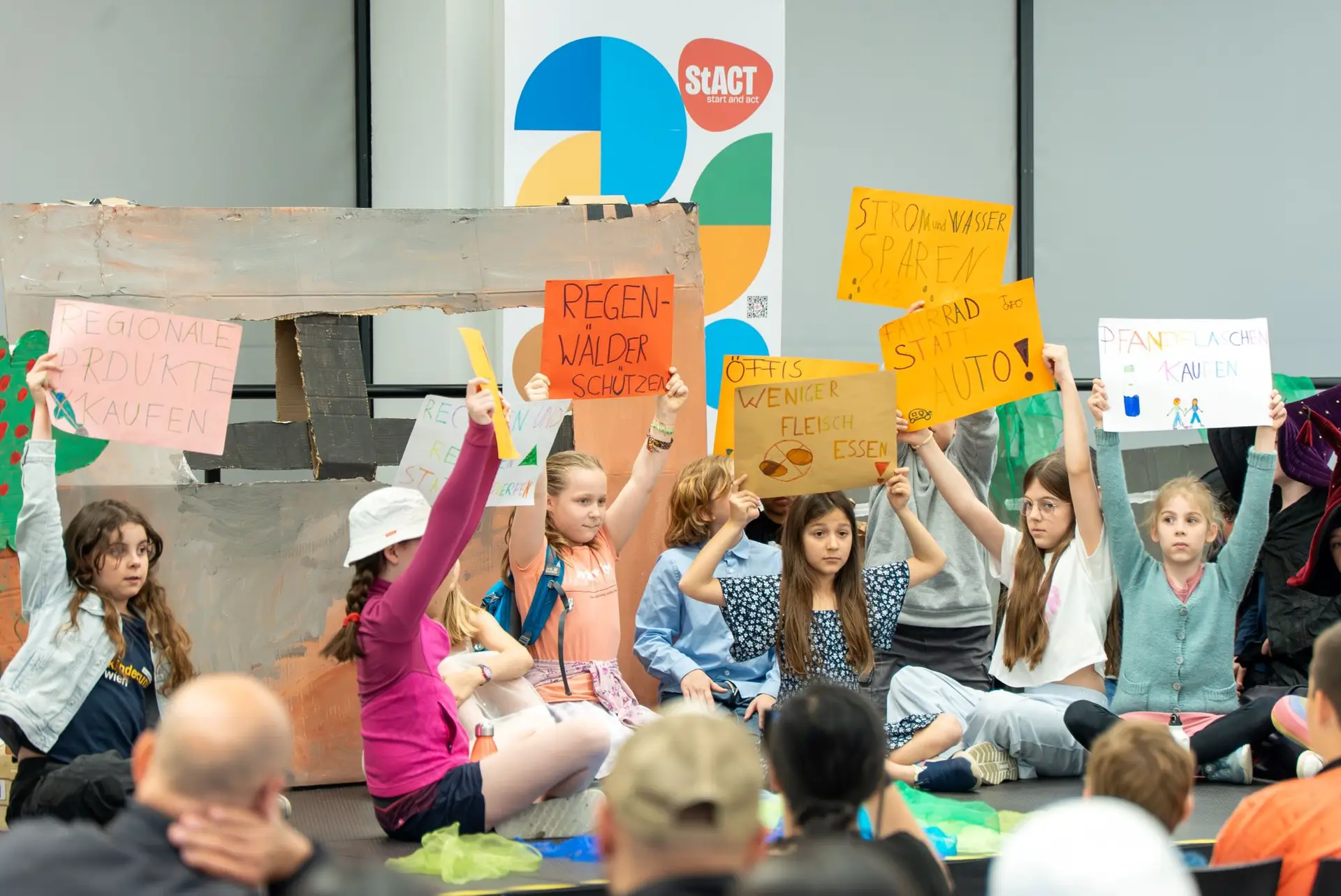 • Die VS Seestadt überraschte mit einer Bühnen-Demonstration samt Transparenten, ein kraftvolles Statement für gesellschaftliches Engagement.