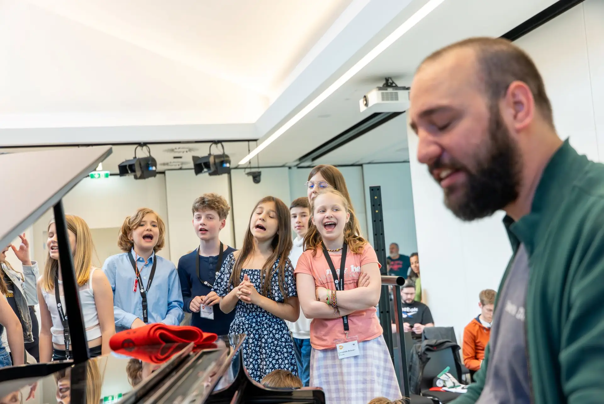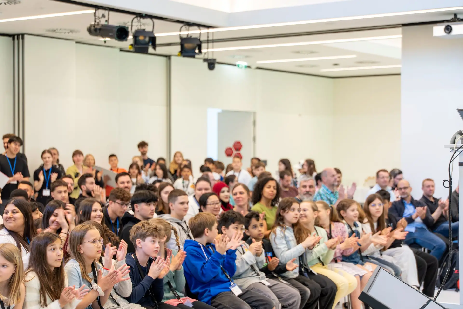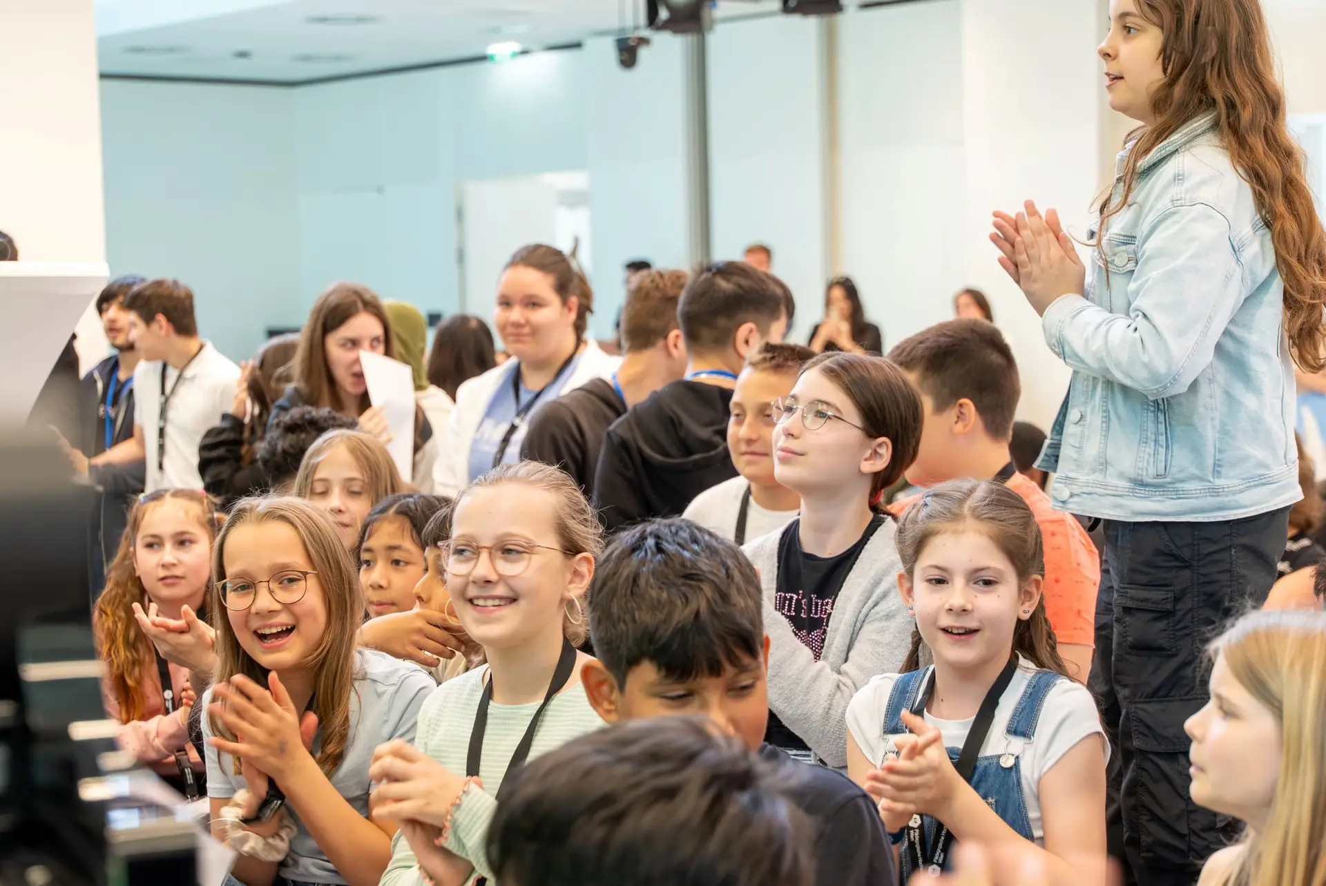 • Die MS Quellenstraße begeisterte gleich mehrfach: mit einem selbst erstellten Song, komponiert mit Unterstützung von KI, der live mit allen Anwesenden gesungen wurde (Klavierbegleitung: Simon Kriese), sowie mit einem eindringlichen Video zum Thema Mobbing in der Schule.