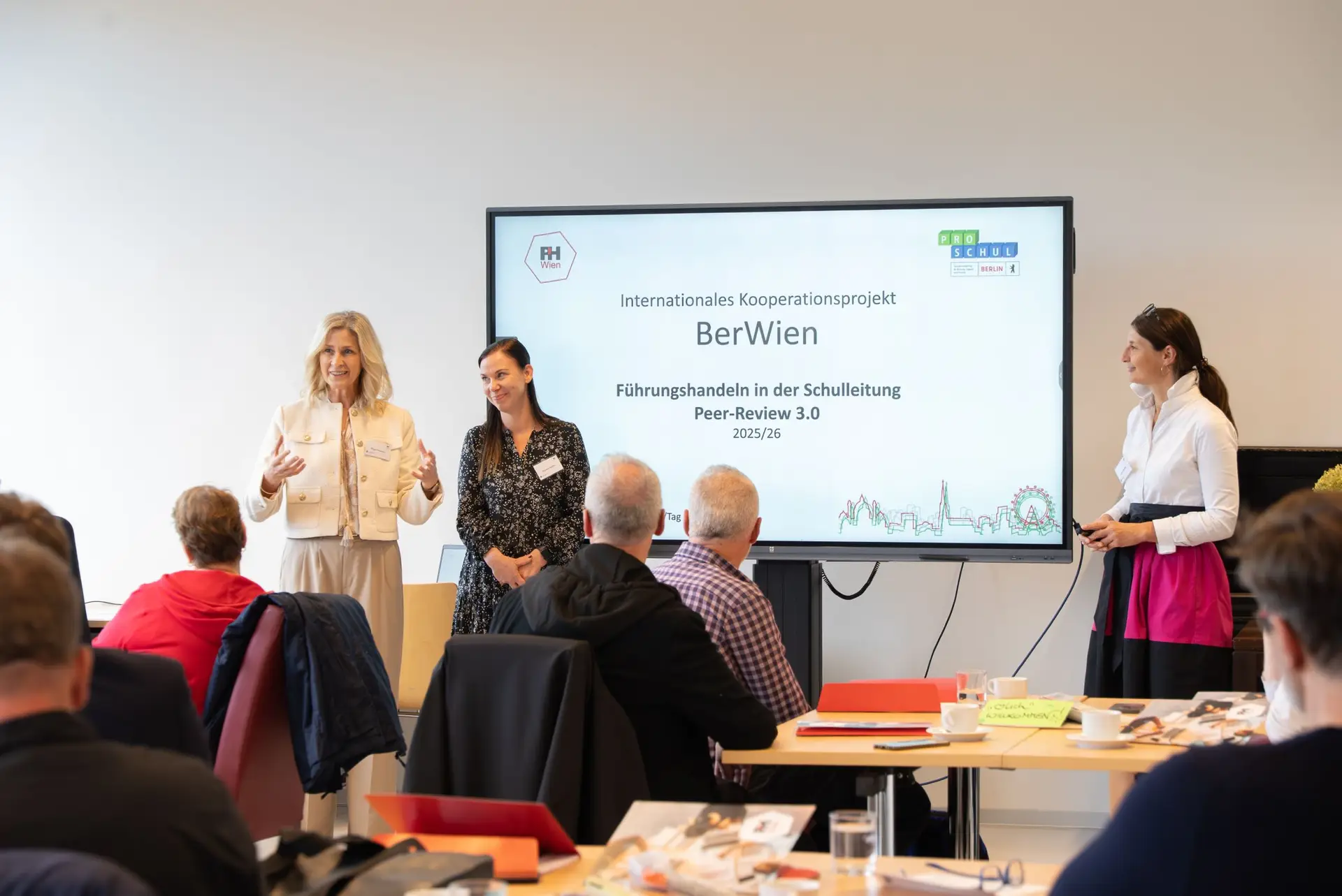 Ziel des Projekts ist es, die Führungskompetenzen der Teilnehmenden zu stärken, den Professionalisierungsprozess der Schulleitungen zu fördern und die Zusammenarbeit zwischen Wien und Berlin nachhaltig zu vertiefen. Im Zentrum steht die Methode des Peer Review: Die Schulleitungen besuchen die Schulen ihrer Kolleginnen und Kollegen, beobachten Führungsprozesse und geben strukturiertes, konstruktives Feedback – so erhalten sie praxisnahe Impulse für ihre eigene Arbeit.