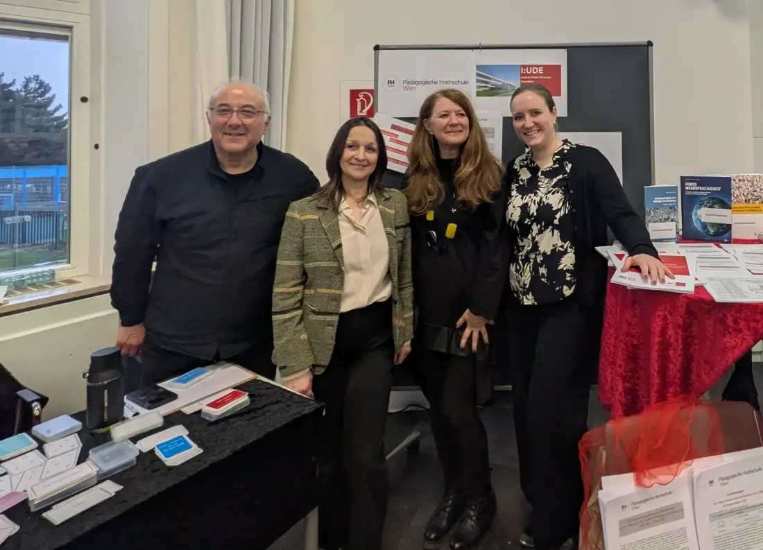 Für I:UDE waren vom Arbeitsbereich Sprachliche Dimensionen die Kolleg*innen Elisabeth Baar, Emra Duvnjak und Cezmi Halkali vertreten, die gemeinsam einen Thementisch der Pädagogischen Hochschule Wien im Namen des Instituts betreuten.