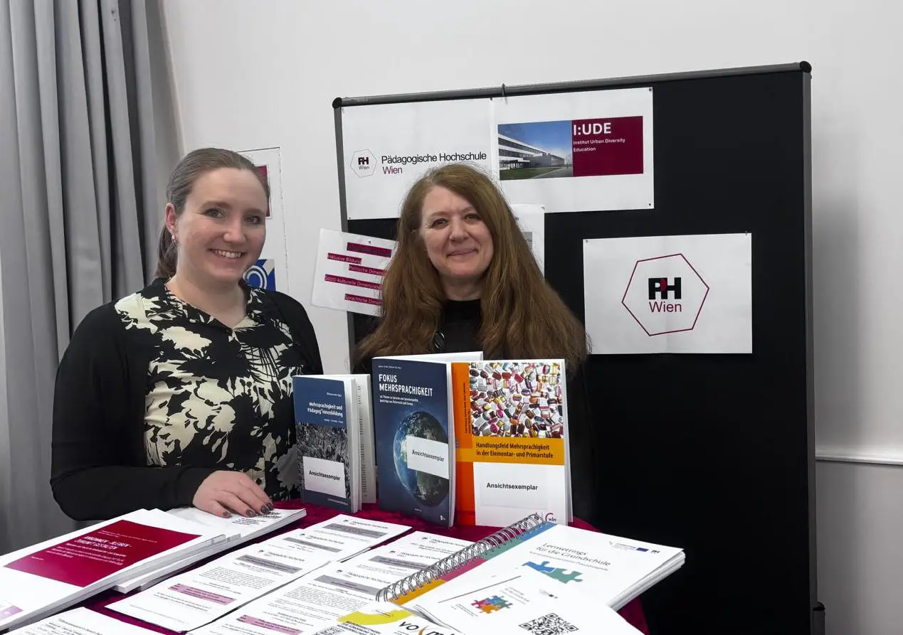 Am 28. Januar 2026 fand im Bildungszentrum der AK Wien die MINI-Messe statt. I:UDE war mit einem viel frequentierten Infostand vor Ort, um zahlreiche Lehrer*innen über aktuelle Hochschullehrgänge und zukünftige Fort- und Weiterbildungen am Urban Diversity Education Campus zu informieren. Es wurden ferner Informationen zum Schulnetzwerk voXmi bereitgestellt. Schließlich gingen zahlreiche Voranmeldungen von Lehrer*innen für einen möglichen neuen Durchgang des Hochschullehrgangs „Erstsprachenunterricht“ (30 ECTS) an der Pädagogischen Hochschule Wien ein.
