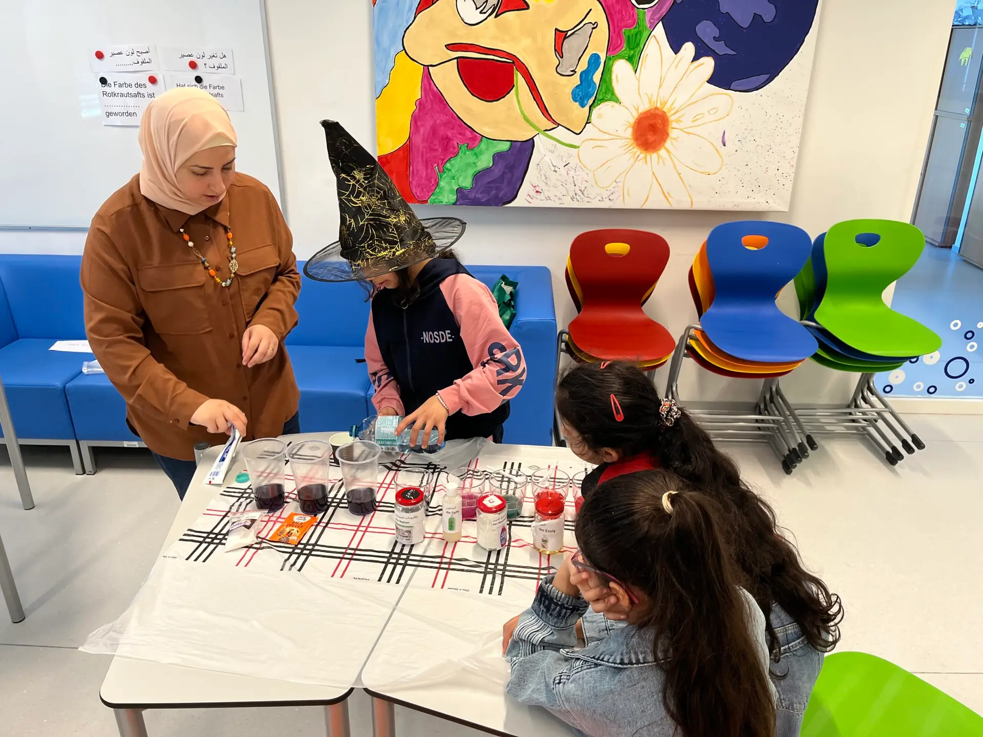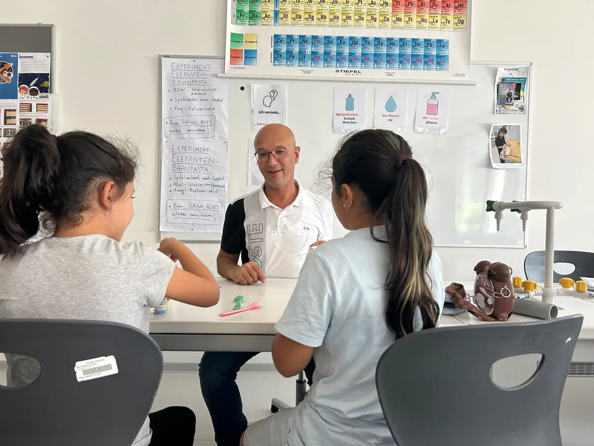 Im Zuge des viersemestrigen nationalen Weiterbildungslehrgangs „Erstsprachenunterricht“ (30 ECTS) an der PH Wien entwickelten 17 Lehrkräfte im vierten Semester spiralcurriculare Unterrichtsszenarien zu MINT-Themen von der ersten bis zur sechsten Schulstufe in den großen Migrationssprachen Österreichs. Diese sprachensensibel gestalteten Unterrichtsszenarien mit MINT-Experimenten wurden in der Sommerschule erprobt und anschließend weiterentwickelt. Die Schüler*innen erstellten Schallkanonen, ließen Rosinen auf mit Kohlendioxid angereichertem Wasser tanzen, experimentierten mit wasserlöslichen und nicht wasserlöslichen Stoffen und isolierten die DNA aus reifem Bananenmus in destilliertem Wasser. Sie staunten bei der chromatographischen Trennung von Farben auf Papier, erfuhren mehr über die Oberflächenspannung verschiedener Flüssigkeiten und führten das Experiment „Ei im Glas“ durch.