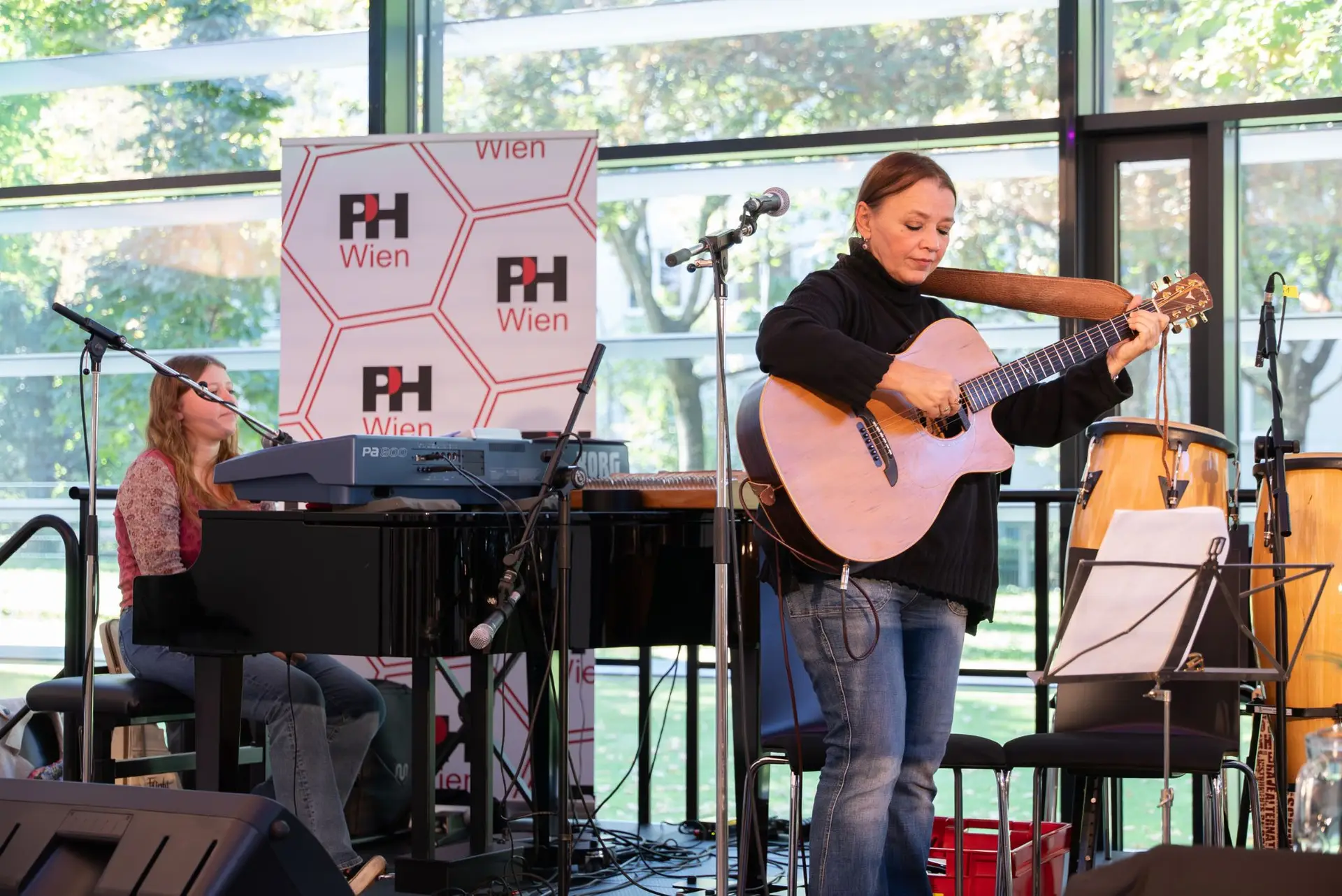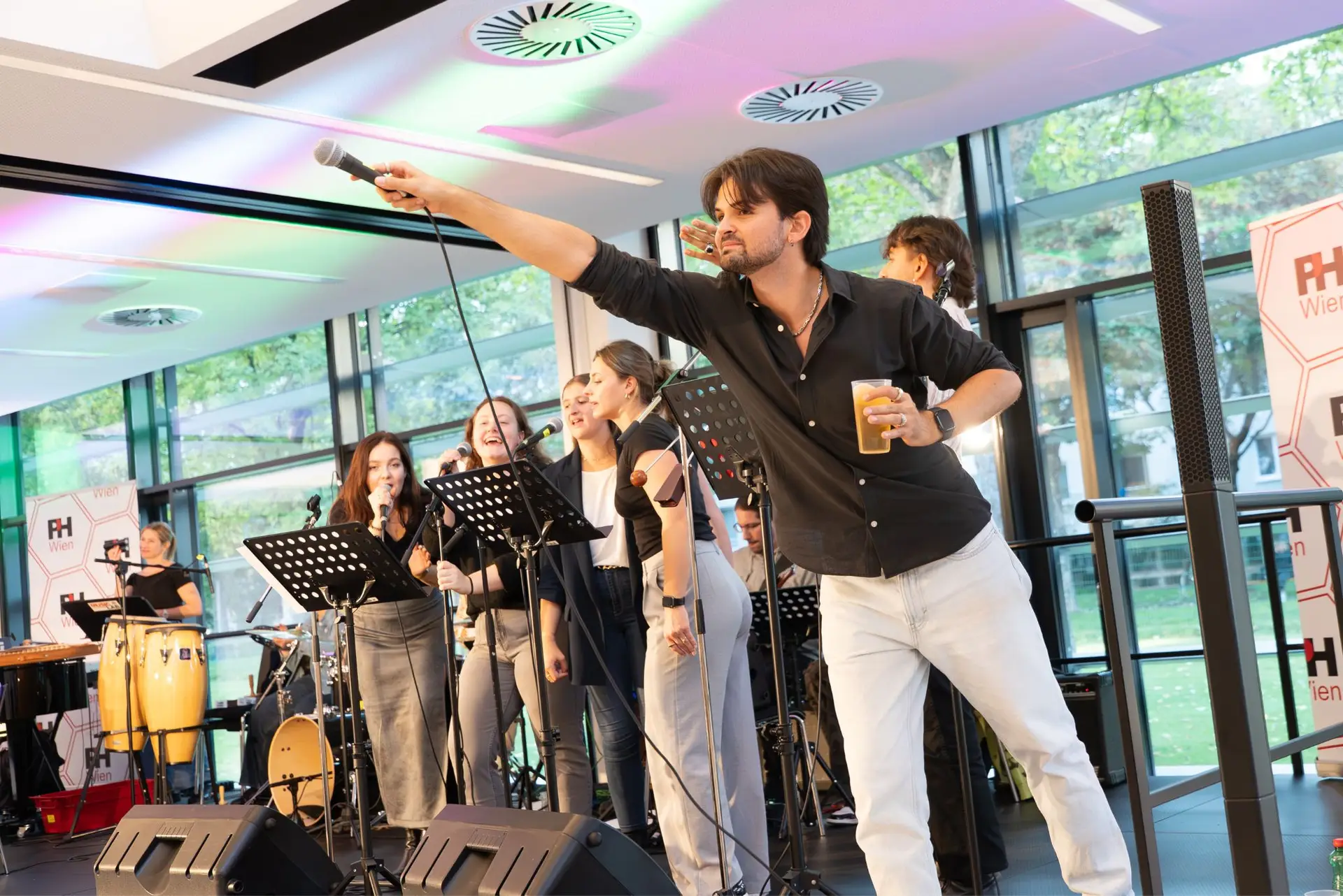 Den offiziellen Auftakt gestaltete Rektorin Barbara Herzog-Punzenberger, die in ihrer Begrüßung betonte, wie wichtig Austausch und Zusammenhalt im Bildungsalltag sind. Musikalisch eröffnet wurde das Fest von der 4. Schulstufe der Praxisvolksschule unter der Leitung von Viktoria Faustmann, gefolgt vom Studierendenensemble (Leitung: Sabine Hogg-Kollars) und der MusikPHabrik unter Christof Moser. Sie sorgten mit ihren Auftritten im Hedy-Lamarr-Saal für eine lebendige Atmosphäre, die den Nachmittag prägte.