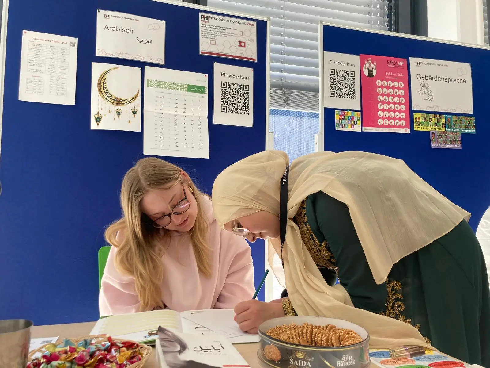 Während Sprachkenntnisse aktiviert oder kleine Phrasen neu erlernt werden, kann man Baklava genießen, den Klängen einer nepalesischen Geige lauschen oder arabische Schriftzeichen üben und darüber hinaus noch neue Kontakte knüpfen oder alte Bekannte treffen, um ein bisschen zu plaudern!