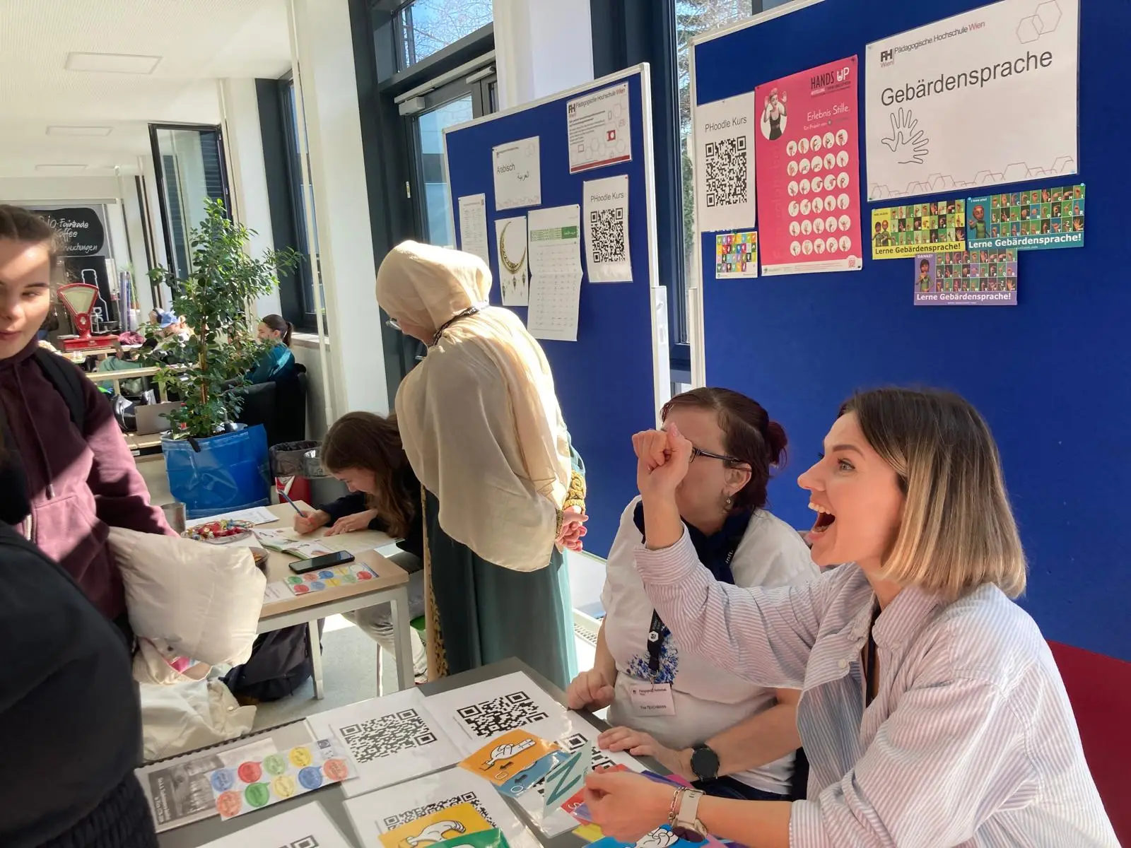 Wo sich Schüler*innen, Studierende und Erasmus+ Incomings tummeln, um gemeinsam mit Verwaltungsbediensteten und Lehrpersonen ihre Sprachentische zu gestalten sowie andere zu besuchen, fühlt man sich wertgeschätzt und genießt das fröhliche, bunte Treiben und die Chancen, voneinander zu lernen und miteinander zu leben!