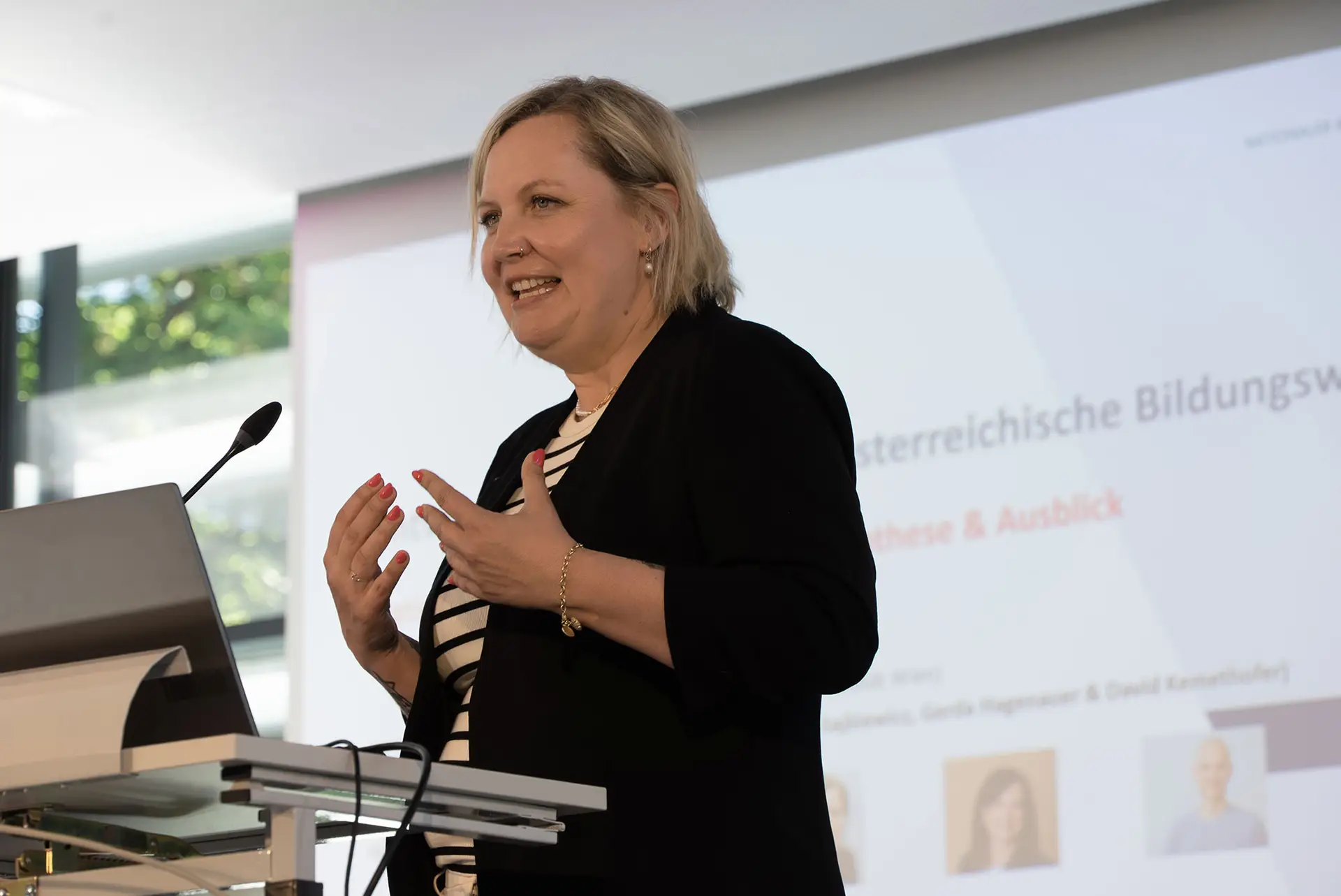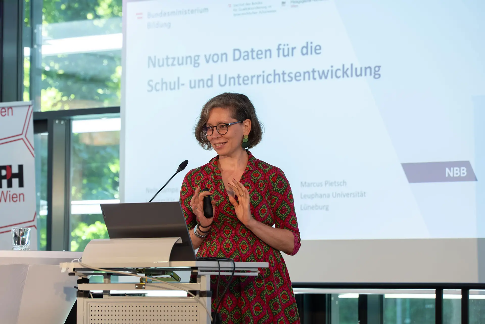 Rektorin Barbara Herzog-Punzenberger, selbst langjährige Mitgestalterin des Bildungsberichts, eröffnete die Veranstaltung mit einem klaren Plädoyer für die Bedeutung evidenzbasierter Bildungsforschung – insbesondere auch für die Lehrer:innenbildung an der PH Wien. In seiner anschließenden Begrüßung zeichnete Sektionschef Andreas Thaller (BMB) die Entwicklung des NBB seit 2007 nach und stellte gemeinsam mit Sophie Maksumic (BMB) die Relevanz datengestützter Schulentwicklung in den Mittelpunkt.