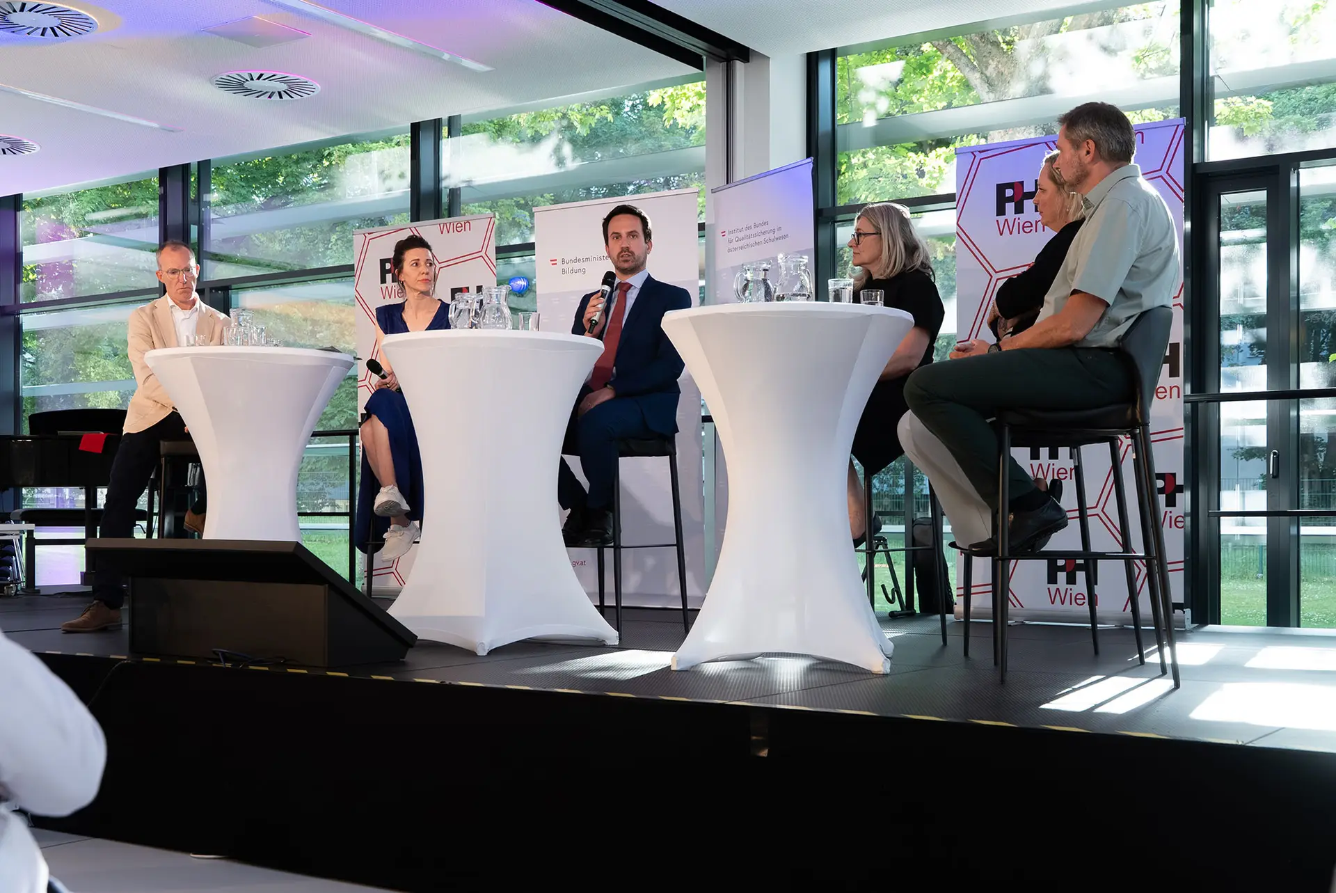 Den Abschluss bildete eine hochkarätig besetzte Podiumsdiskussion unter dem Titel „Wie können Erkenntnisse aus dem Bildungsbericht für die schulische Praxis abgeleitet werden?“. Bildungsminister Christoph Wiederkehr betonte die Rolle des NBB als strategisches Instrument für anstehende Reformprozesse. Gemeinsam mit Franz Marischka (SQM), Ursula Cermak (Schulleiterin), Jana Groß Ophoff (PH Vorarlberg) und Klaus Himpsl-Gutermann (PH Wien) wurde kontrovers, aber konstruktiv über nächste Schritte diskutiert – nicht ohne klare Impulse, wohin sich das Bildungssystem entwickeln sollte.