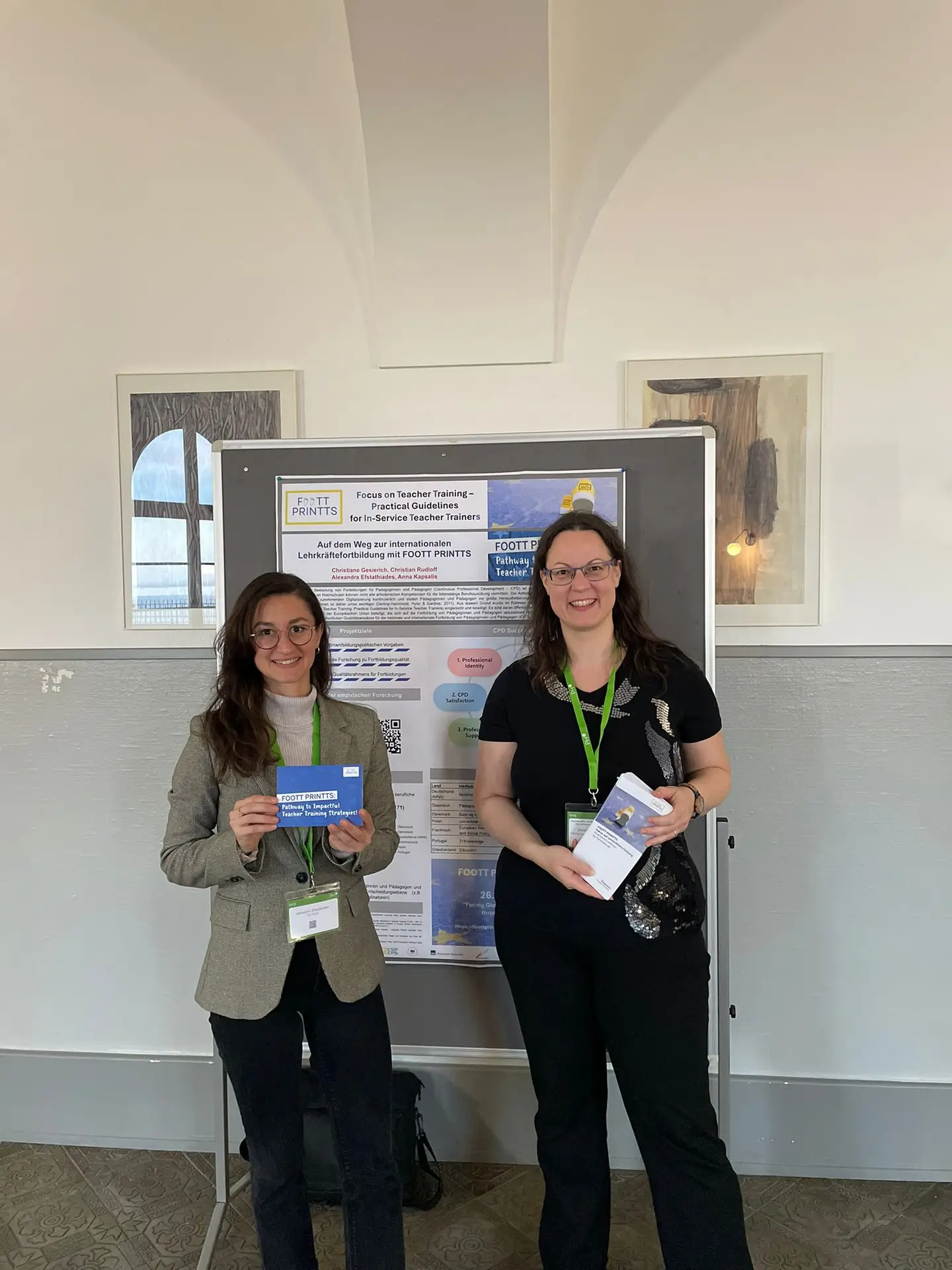 Am Donnerstag (Poster) und Freitag (Vortrag) präsentierten Alexandra Efstathiades und Christiane Gesierich das Erasmus+-Projekt “Focus on Teacher Training – Practical Guidelines for In-Service Teacher Trainers” (FOOTT PRINTTS). An diesem Forschungsprojekt beteiligen sich öffentliche Organisationen und private Einrichtungen aus sieben Partnerländern der Europäischen Union, die sich auf die Fortbildung von Pädagoginnen und Pädagogen spezialisiert haben. Das gemeinsame Forschungsziel ist die Entwicklung eines ganzheitlichen Qualitätsansatzes für die nationale und internationale Fortbildung von Pädagog:innen (CPD). Der Fokus liegt auf den Vortragenden bei Fortbildungsveranstaltungen für Pädagoginnen und Pädagogen und der organisatorischen Struktur der Fortbildung, um forschungsbasierte Ergebnisse und Bedürfnisse für die Umsetzung in der Praxis in der Fortbildung von Pädagoginnen und Pädagogen miteinander zu verbinden. Das Team der PH Wien gab am Donnerstag einen Überblick über das Projekt (Poster) und stellte am Freitag im Rahmen eines Vortrages Teilergebnisse des Projekts zu von Online- und Präsenzfortbildungen vor. Die Forschungsergebnisse zeigten, dass Veranstaltungen mit Präsenzanteilen effektiver wahrgenommen werden als reine Online-Veranstaltungen, was im Anschluss an die Präsentation auch zu angeregten Diskussionen führte.