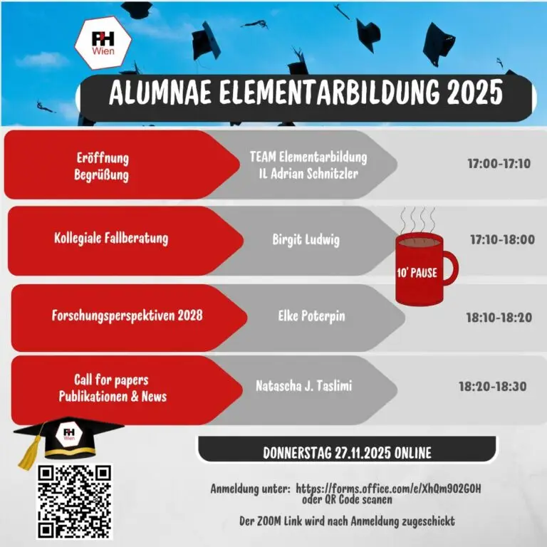 Es freut uns sehr, Sie hier begrüßen zu dürfen – ein Ort, der die Verbindung zwischen ehemaligen Studierenden und Absolvent:innen stärkt. Diese Plattform dient als Brücke zwischen Vergangenheit und Gegenwart, um Erinnerungen zu teilen, Netzwerke zu pflegen und die Themen der Elementarpädagogik, die uns alle verbindet, fortzusetzen.