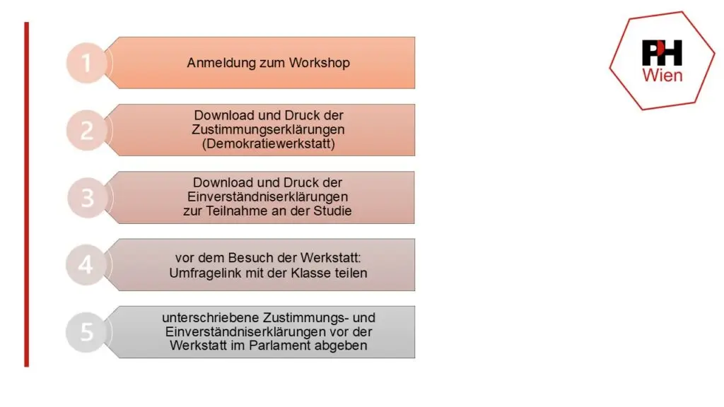 In Kooperation mit dem österreichischen Parlament führt die Pädagogische Hochschule Wien eine Wirksamkeitsstudie zu Demokratiebildung und Demokratiekompetenz bei Kindern und Jugendlichen durch. Auf dieser Seite finden Sie sämtliche Informationen zur Studie und Kontaktdaten der Projektverantwortlichen. Klicken Sie einfach auf die für Sie zutreffenden Links.