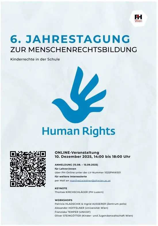 Die 6. Jahrestagung zur Menschenrechtsbildung wird als Online-Tagung via Zoom stattfinden. Die Tagung fokussiert in diesem Jahr auf die Bedeutung, Umsetzung und Thematisierung von Kinderrechten in der Schule.